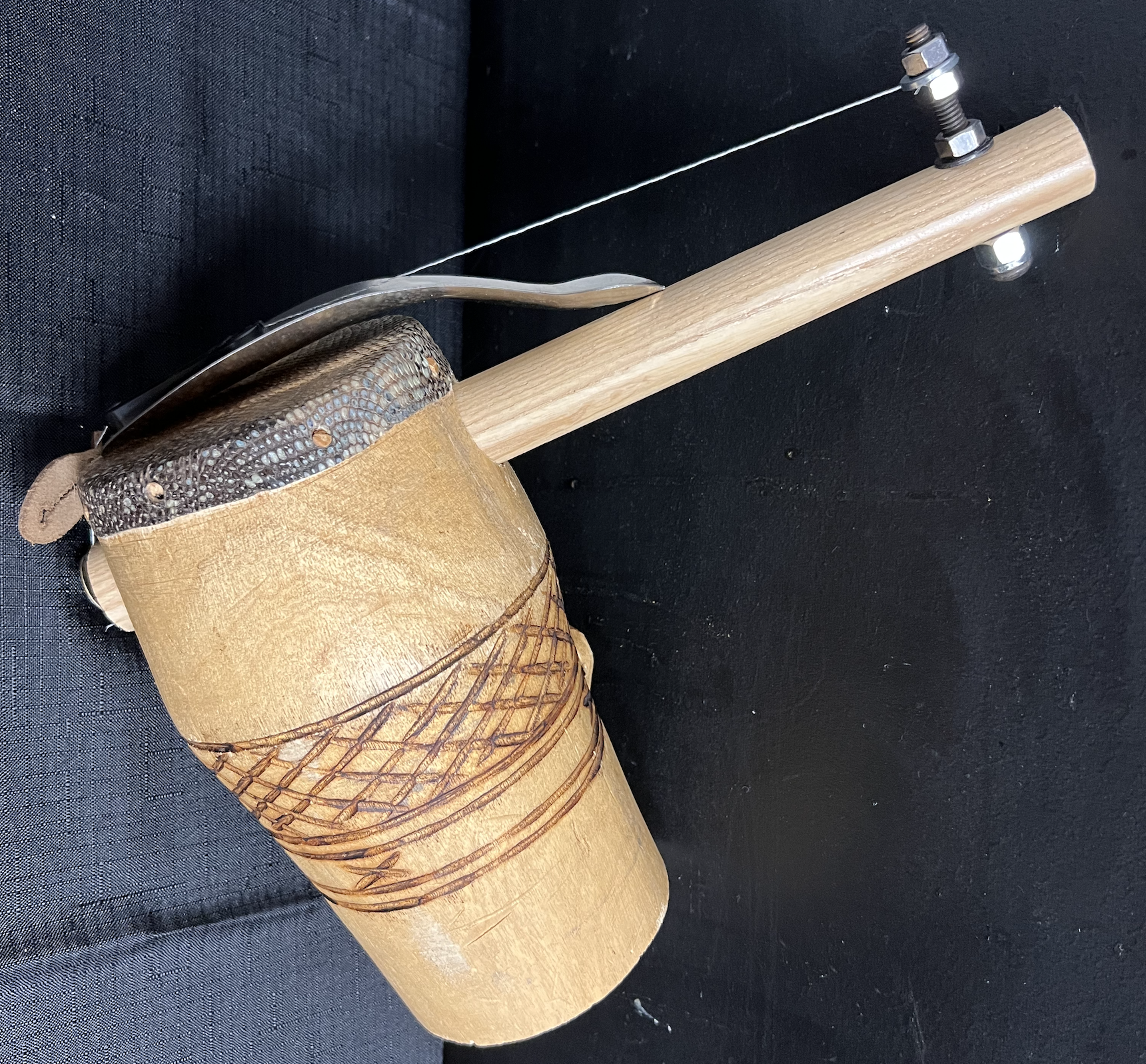 Although this musical instrument is played a bit like a violin, it has a different, unique sound to it. It is accompanied by drums and singing.